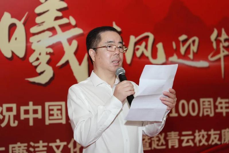 金海燕在开幕致辞中代表学校对莅临参加活动的领导、校友和师生表示欢迎,并对参与组织、支持本次活动的单位和师生表示感谢。他指出,在建党百年之际,学校策划、组织这一活动,其初衷就是通过广大师生参与的过程,在校园营造起廉洁文化的氛围。