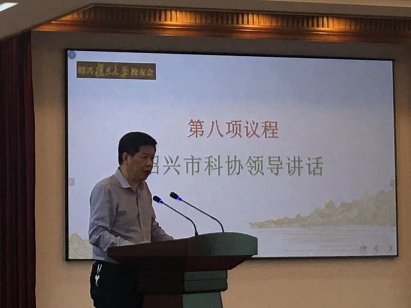 贾良荣副主席代表绍兴市科协对会员大会和绍兴校友会乔迁新址送上了诚挚的祝福,并表示期待复旦校友继续在共同推进绍兴高质量发展中发挥重要作用。