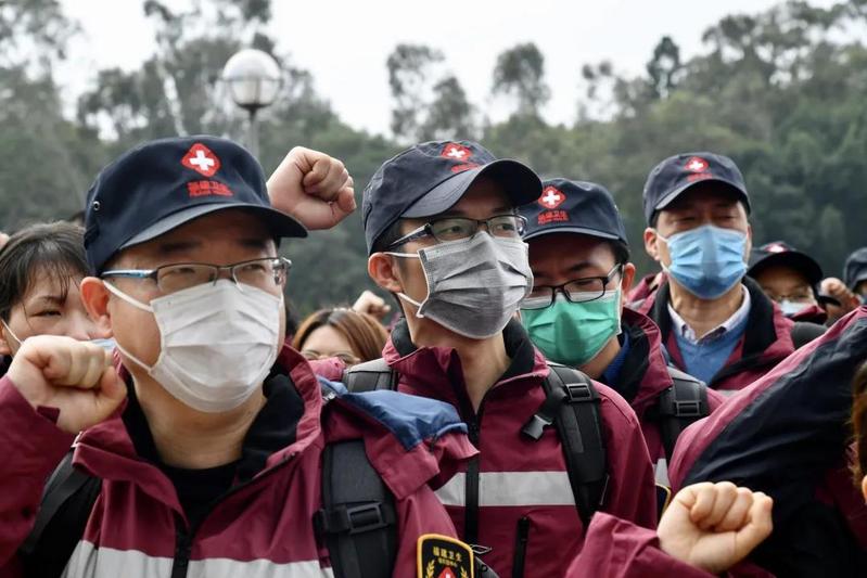 ▲2月11日,赖善榕等首批援鄂疾控队员出征宣誓