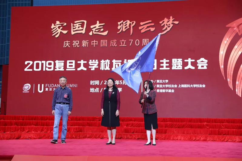 鲜活、昂扬、多彩的校园生活永不散场,“团结、服务、牺牲”的复旦精神薪火相传。返校日会旗交接仪式上,本届返校日班级联络员代表、1969届化学系章巨修校友,许征,2020年返校日班级联络员代表、2010届经济学院王欣婷校友共同完成会旗传递。在悠扬校歌声中,校友返校日主题大会顺利结束。