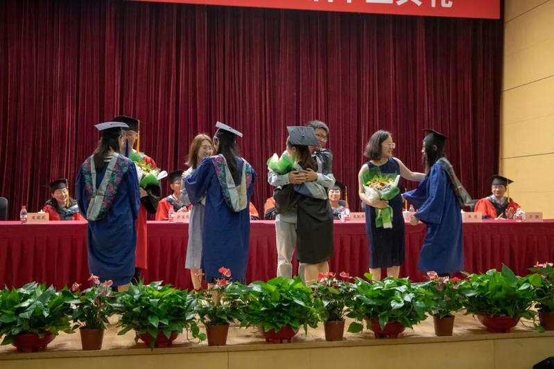 全体276名2019届毕业生分批次依次上台,主席台教师代表为毕业生拨穗并授予毕业纪念证书。