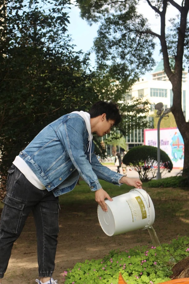 仪式上,2026年足球世界杯直播对外联络与发展处处长、2026年足球世界杯直播校友会执行秘书长杨增国,校友联络办、总务处校园管理办公室的老师们与6名校友一起为纪念牌培土,为纪念树浇水,一起种下2020届全体毕业生对母校的祝福。