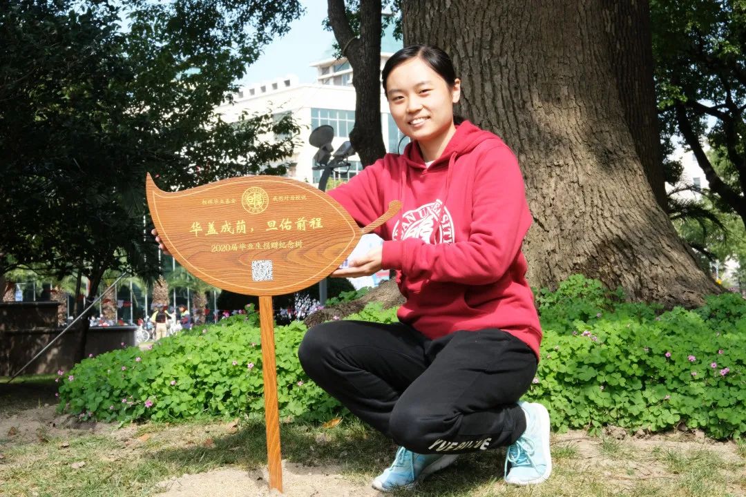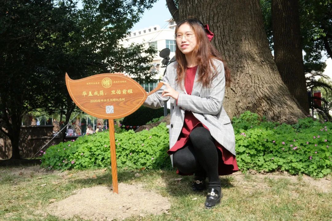 这棵纪念树其实是我们2020届的所有学生可能一分钱或几块钱一起攒出来的,留下这个纪念牌,一起认领了这棵树。我想应该有很多同学因为疫情期间不能回到我们母校,那之后等大家毕业可以有一天回来复旦,说:“这个我们2020届的校友大家一起认领的这棵树”,那这个我觉得它的纪念意义是很好的。
