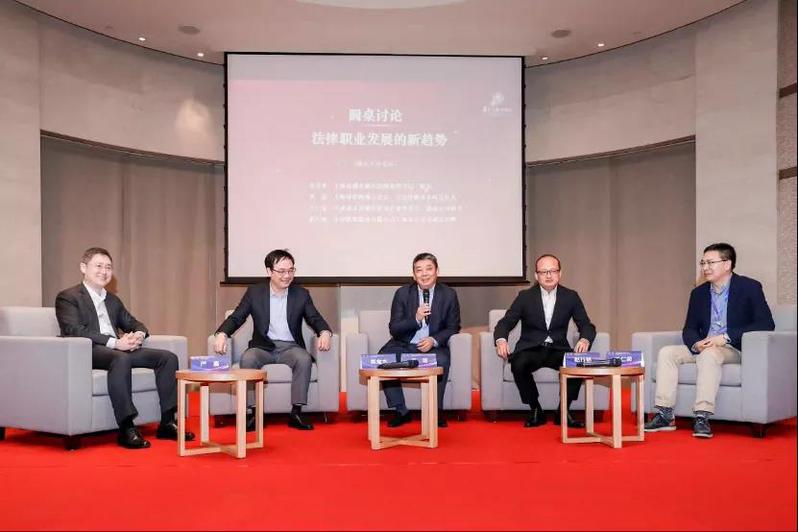 在圆桌讨论环节,上海市浦东新区法院党组书记、院长吴金水(1990届本科),上海市律师协会会长、方达律师事务所合伙人季诺(1992届本科、1998届法学硕士),百威亚太首席法律及企业事务官、联席公司秘书王仁荣(2012届博士),中国铁塔股份有限公司上海市分公司副总经理赵行明(2003届法律硕士),在严嘉校友的主持下,围绕“法律职业发展的新趋势”主题,展开了富有思考和现实意义的讨论。