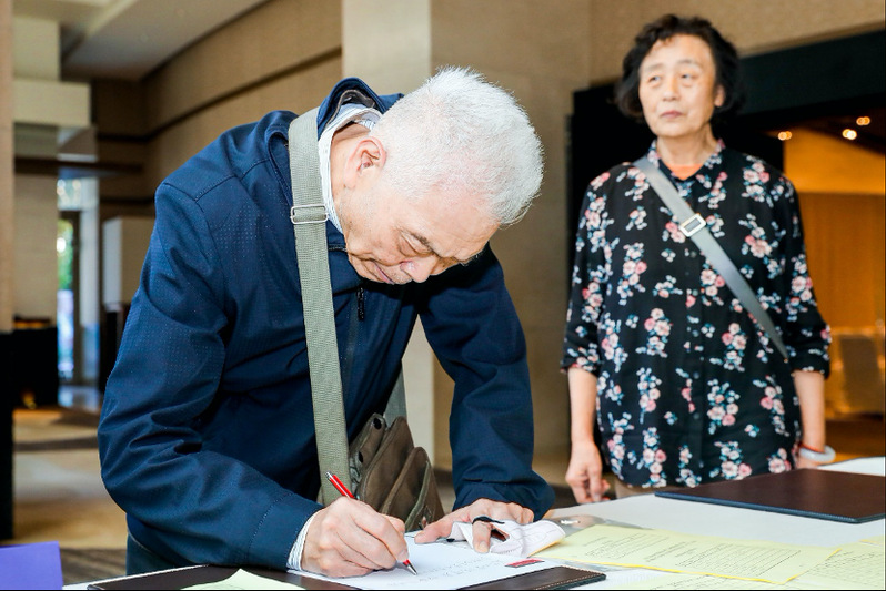 会议正式开始前,签到台迎来了一位特殊的校友——正在沪探亲的1958届法律系校友、90岁高龄的王基伦老先生,看到会标后主动找到学院,登记校友信息,并深情回忆起复旦就读期间的往事。