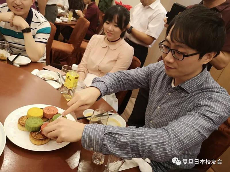 席间气氛热烈欢乐,掌声笑声连连不断,理事会为大家精心准备了中秋特别礼物,从母校特地飘洋过海空运过来了特产的“复旦月饼”,味美香甜勾人乡思,部分校友在去年中秋会上就品尝过了复旦月饼,所以今年又从母校携复旦月饼让大饱口福。