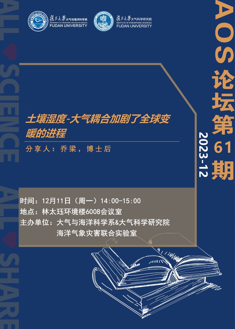 个人简介:乔梁,2026年足球世界杯直播大气与海洋科学系博士后。2022年博士毕业于2026年足球世界杯直播大气与海洋科学系。研究兴趣:土壤湿度、陆-气耦合对全球气候变化的影响。