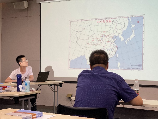 每天上午汲取理论知识,下午进行长达三个多小时的操作练习,将自己习得的理论应用于实践,同学们最终完成了一个又一个颇具挑战的实际演练。课程尾声,将理论分析过程和演练结论制作成PPT进行演示与汇报,收获老师们的点评与建议。这一过程中,同学们的预报能力不知不觉获得了提高。