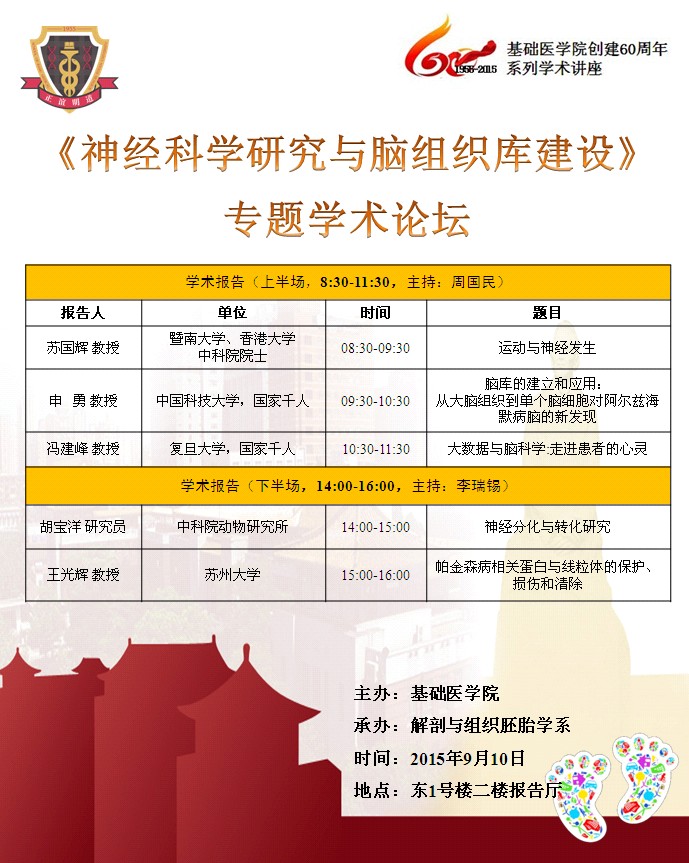基础医学院创建60周年系列学术讲座(七):《神经科学研究与脑组织库建设》专题学术论坛