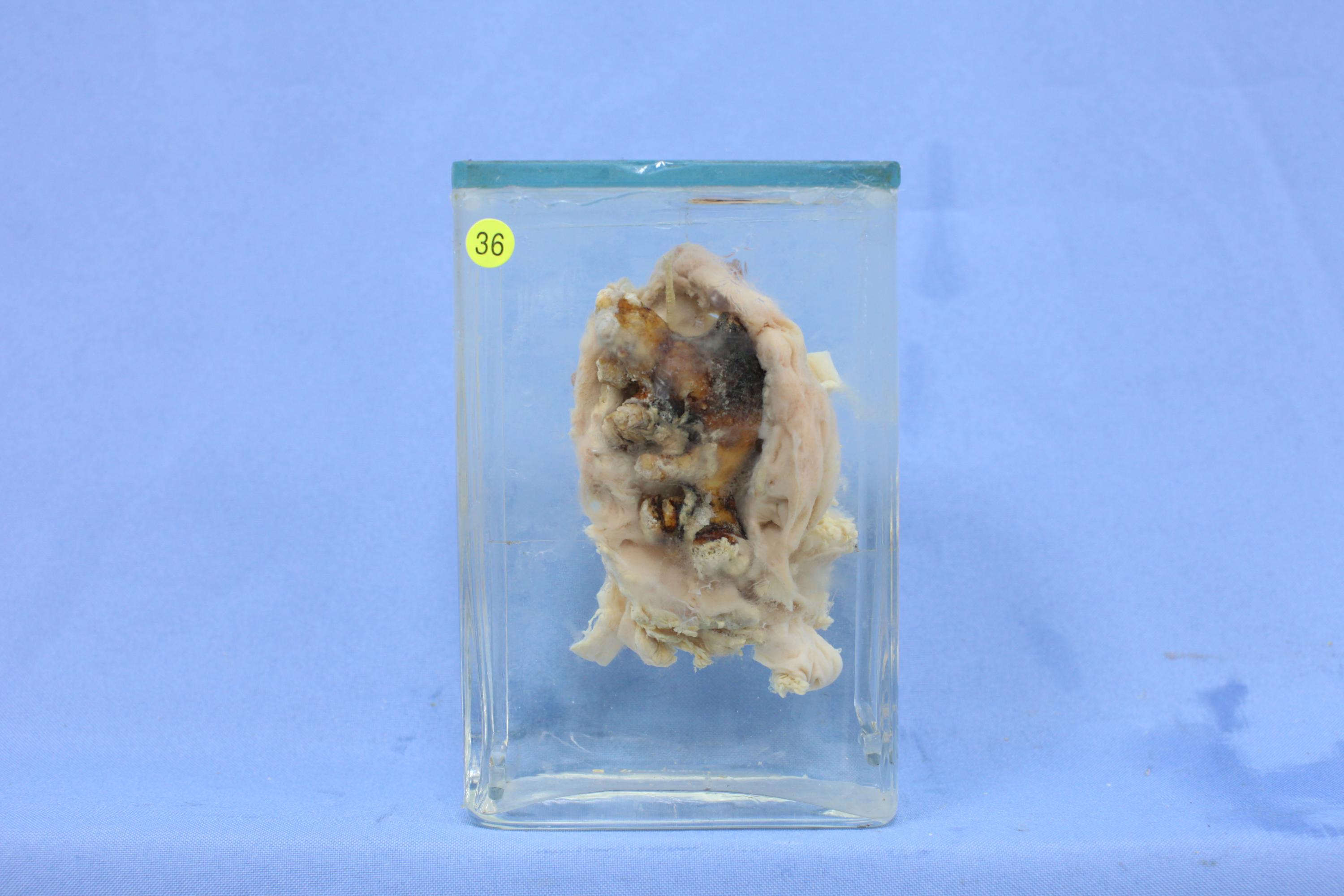 尸检:两侧肾盂结石导致慢性肾盂肾炎急性发作,引起尿毒症、败血症。膀胱鳞癌,浸润阴道壁,阻塞双侧输尿管。小叶性肺炎,肺气肿,肺动脉小分支血栓。