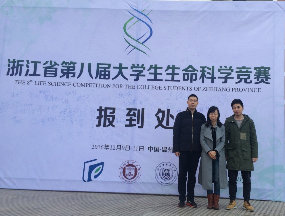 今年6月,在浙江大学国家级实验教学示范中心的邀请下,我院教学中心组织了两支本科生参赛队伍参加了浙江省第八届大学生生命科学竞赛。12月9日至12月11日代表学生赴浙江温州医科大学参加现场答辩会上,最终荣获一等奖和二等奖各一项。