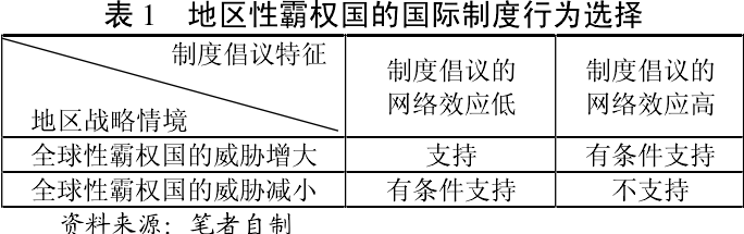 三、地区战略情境、制度倡议特征与地区霸权国的行为选择