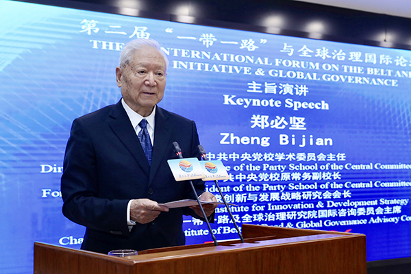 中央党校学术委员会主任、原常务副校长,国家创新与发展战略研究会会长郑必坚以“‘一带一路’与中国新机遇”为题发表演讲。