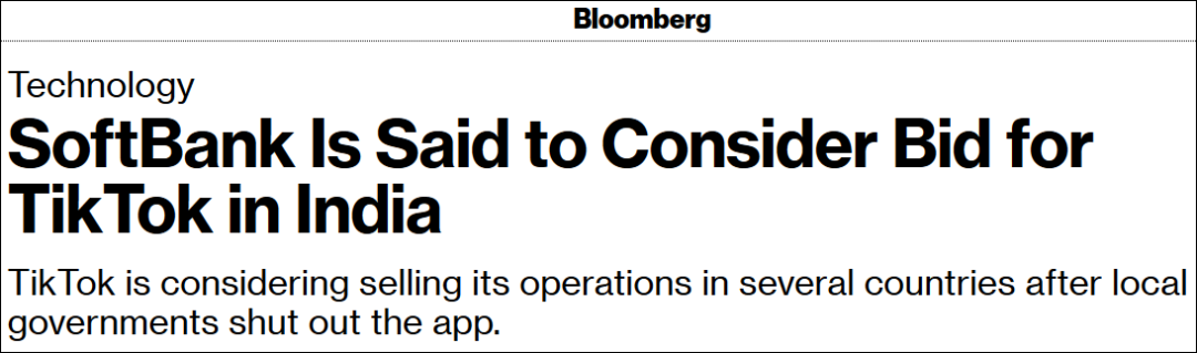 据彭博社9月3日报道,软银集团正在探索组建一个团队,召集一批竞购者收购TikTok在印度的业务,并已开始积极寻找当地的合作伙伴。