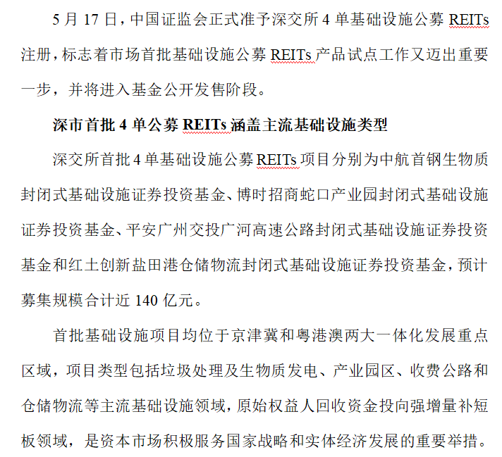 深交所首批基础设施公募REITs获证监会注册