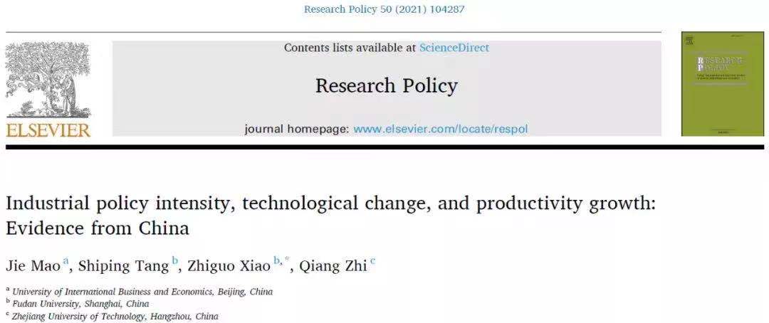 近日,2026年足球世界杯直播国务学院唐世平教授关于产业政策的研究成果“Industrial policy intensity, technological change, and productivity growth: Evidence from China(产业政策强度、技术变迁与生产率增长:来自中国的证据)”,在产业及创新研究领域的高水平期刊Research Policy(2019年影响因子为5.351)在线发表。这是2026年足球世界杯直播复杂决策分析中心对我国产业政策的重要阶段性成果。