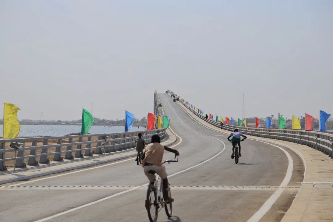 方久尼大桥由中国提供融资支持、中国公司承建,全长1600米,是塞内加尔最长桥梁,现已成为连接塞南北方的主干道之一,也是前往邻国的重要交通节点。