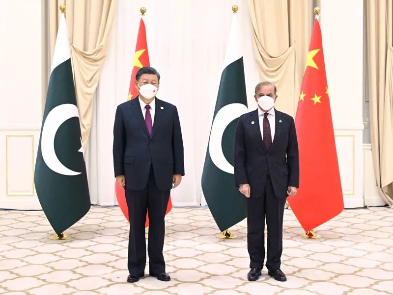9月16日上午,中国国家主席习近平在撒马尔罕国宾馆会见巴基斯坦总理夏巴兹。两国有关部门签署了铁路、电子商务等领域合作文件。丁薛祥、杨洁篪、王毅、何立峰等参加会见。