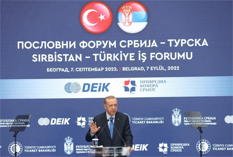 埃尔多安在贝尔格莱德举行的土耳其-塞尔维亚商业论坛上发表了讲话。他指出,陪同他访问塞尔维亚的庞大代表团表明了安卡拉对与贝尔格莱德合作的重视,他希望土耳其-塞尔维亚商业论坛可以为他们各自的国家和商人们带来积极的成果。土耳其与塞尔维亚有着根深蒂固的历史和文化纽带。埃尔多安表示塞尔维亚是巴尔干地区和平与稳定的一个关键国家,我们在合作中努力,以使该地区的和平与繁荣得到实现。