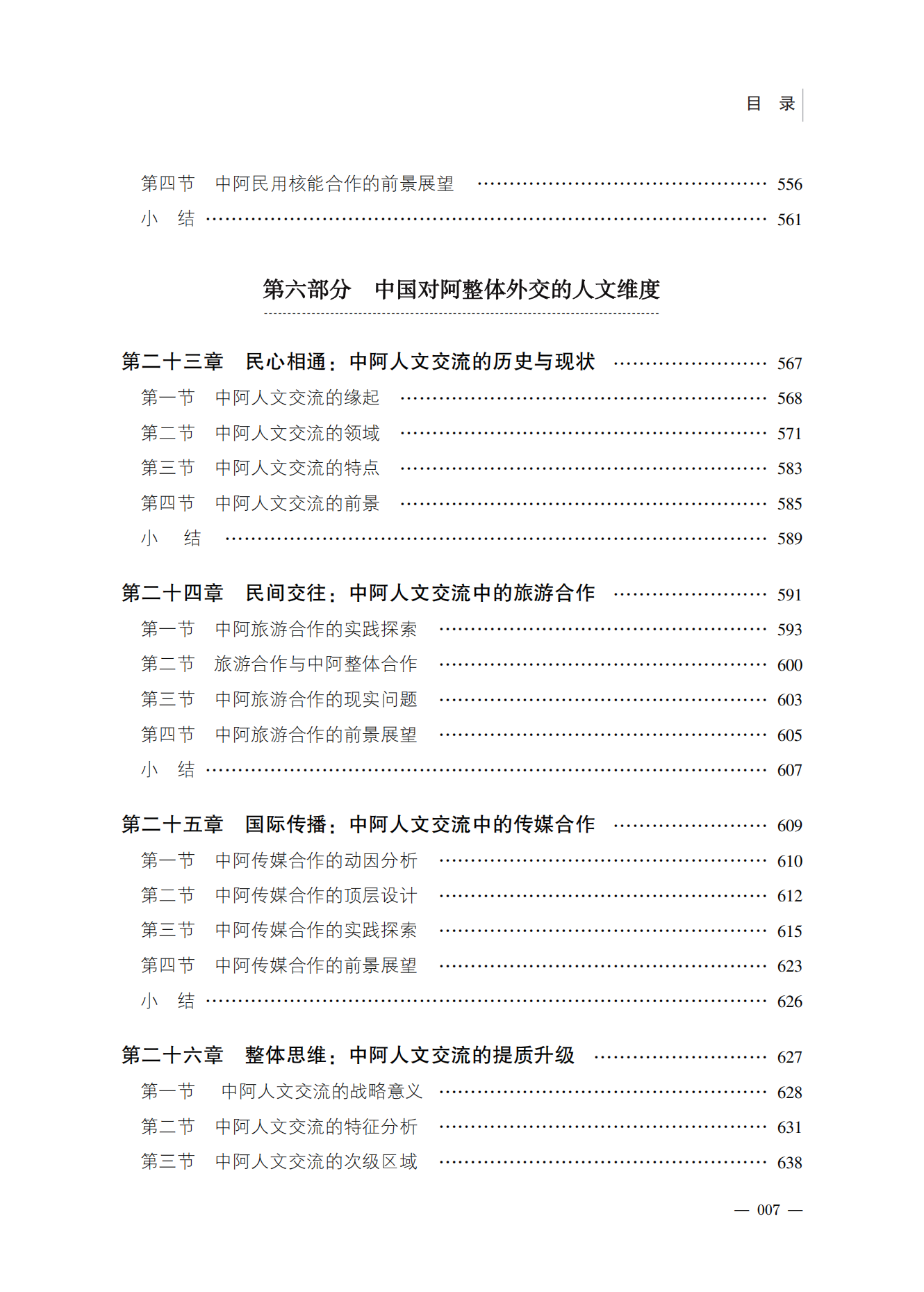 《中阿合作论坛框架下中国对阿拉伯国家整体外交研究》以新时代中国对阿拉伯国家整体外交为研究对象在总结2004年以来“中阿合作论坛”机制化建设成果的基础上对下阶段如何发挥“论坛”的平台作用、推动中阿高质量共建“一带一路”、运筹与世界大国关系、维护中东和平与发展落实全球发展倡议、全球安全倡议和全球文明倡议开展专题性、战略性与前瞻性研究。这部著作不仅有助于中国特色外交学和中东区域与国别范式研究,对于构建中阿命运共同体、落实习主席提出的中阿“1+2+3”合作框架亦具有重要现实意义。
