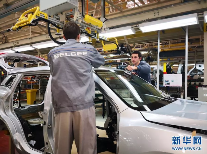 位于白俄罗斯的吉利全散件汽车制造厂拍摄的总装车间。新华社记者 张若玄 摄