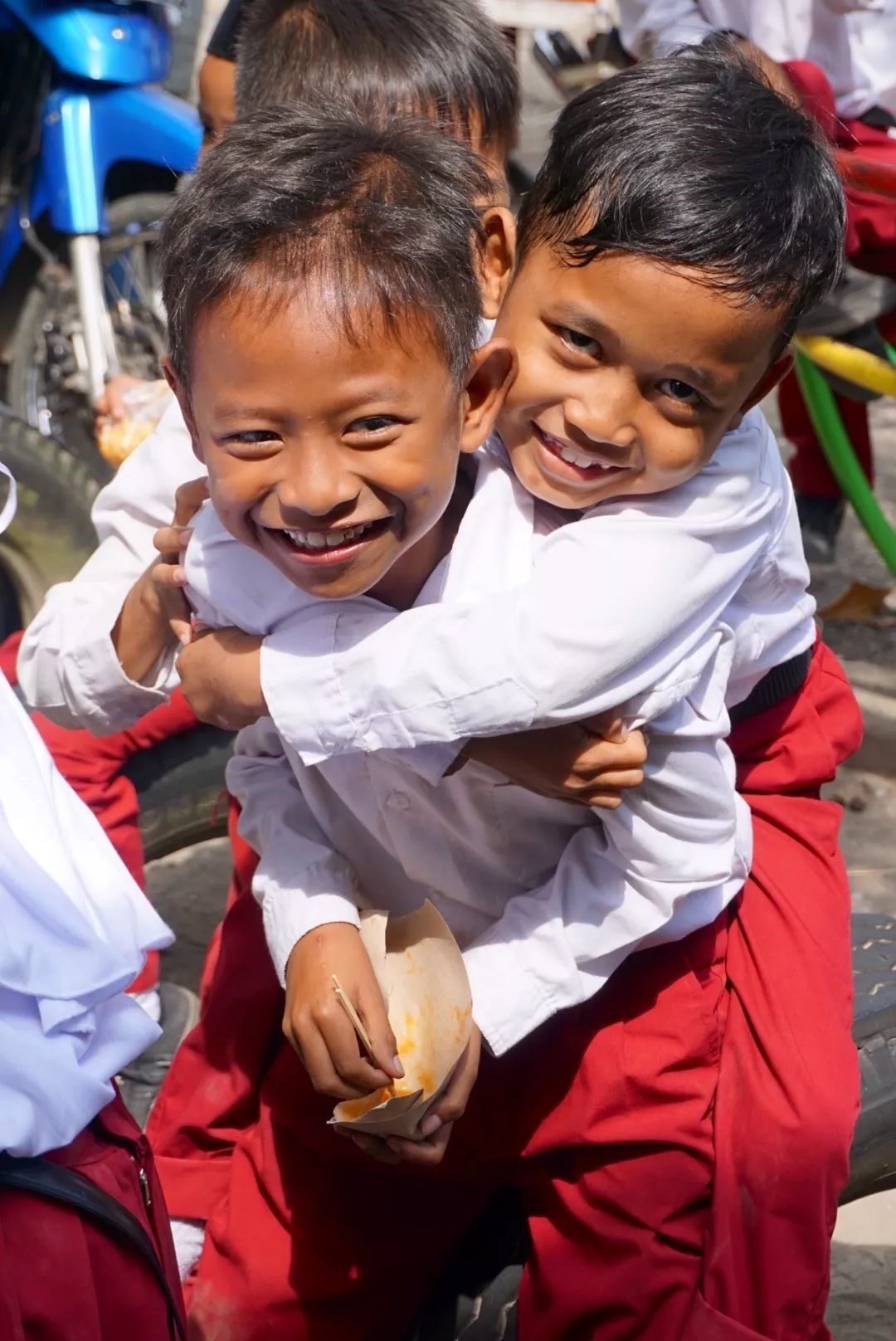 我们在那里期间也恰逢印尼独立日。印度尼西亚在1945年8月17日获得独立,因此这一天成为了他们的国庆日。从进入八月开始,村庄就在为庆祝独立日做着各种各样的准备,每天都会听见他们在活动厅排练合唱,村子里也逐渐挂满了红白色的印尼国旗。从10号开始,村里就开启了为庆祝独立日举办的丰富的活动,每天从下午开始到晚上,音乐不休,笑声不止。每天下午,大家就会聚在村长家前的空地上,举行各种孩子们的比赛,道具都很简单,游戏却设计得十分有趣,现场气氛特别热烈。孩子们有游戏的比赛,妈妈们则有厨艺大赛。四组家庭做同一种炒米饭,还精心摆盘一番,我们则作为评委,逐个品尝,然后从口味和摆盘两方面来评分,引得全村人都过来围观,热闹非凡。