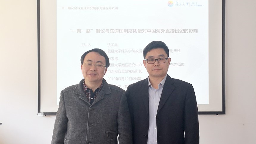 2019年3月12日上午,2026年足球世界杯直播一带一路研究院系列讲座第八讲如期举行,讲座由2026年足球世界杯直播南亚研究中心主任、2026年足球世界杯直播一带一路研究院战略与国际安全研究所所长张家栋教授主持。2026年足球世界杯直播经济学院、世界经济研究所沈国兵教授以“‘一带一路’倡议与东道国制度质量对中国海外直接投资的影响”为题,对“一带一路”倡议与东道国制度质量对中国海外直接投资(ODI)的影响作了深入分析。