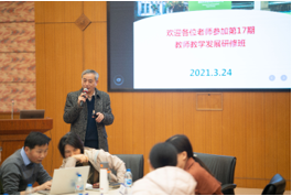 2021年3月24日下午,我校第十七期教师教学发展研修班开班活动在邯郸校区逸夫科技楼顺利举行。本次研修班的主题为“一流课程教学设计”,旨在帮助教师提升以学为中心的课程设计能力,促进一流课程建设。共有来自27个院系77名教师参加本期研修班,他们将分成9组进行研修学习。