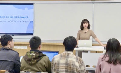 李昕老师主讲的“英语语音学”是我校外文学院英语语言文学系的一门专业选修课。李老师针对传统语音学枯燥乏味的困局,进行“一体三能”融合创新设计:即围绕英语语音学体系(“一体”),发展三种能力(语音学跨语言比较能力、语音学学术研究能力、语音学应用实践能力),并以发现和解决语音学问题的融合创新能力为目标,坚持语音学理论与应用实践相结合进行教学设计。