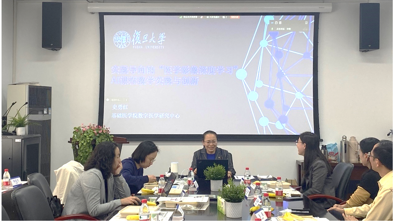随后,基础医学院史勇红老师介绍了团队在“医学影像深度学习”AI进阶课程建设的经验。课程从医学影像临床诊断需求入手,逐步深入复杂的深度学习模型训练和应用,引导学生发现问题并探索解决方案,鼓励和培养学生的科研创新思维。教学内容采用模块化设计,涵盖神经网络基本原理、医学影像基础、MATLAB基础三大模块,包括理论知识讲解、代码编写演示、实践教学环节,将理论教学与实践操作结合,辅以医学案例分析。教学团队依托基础医学院数字医学研究中心、上海市医学图像处理和计算机辅助手术重点实验室,拥有计算机、生物医学工程等交叉学科背景,在课程设计上针对性强,实践经验丰富。