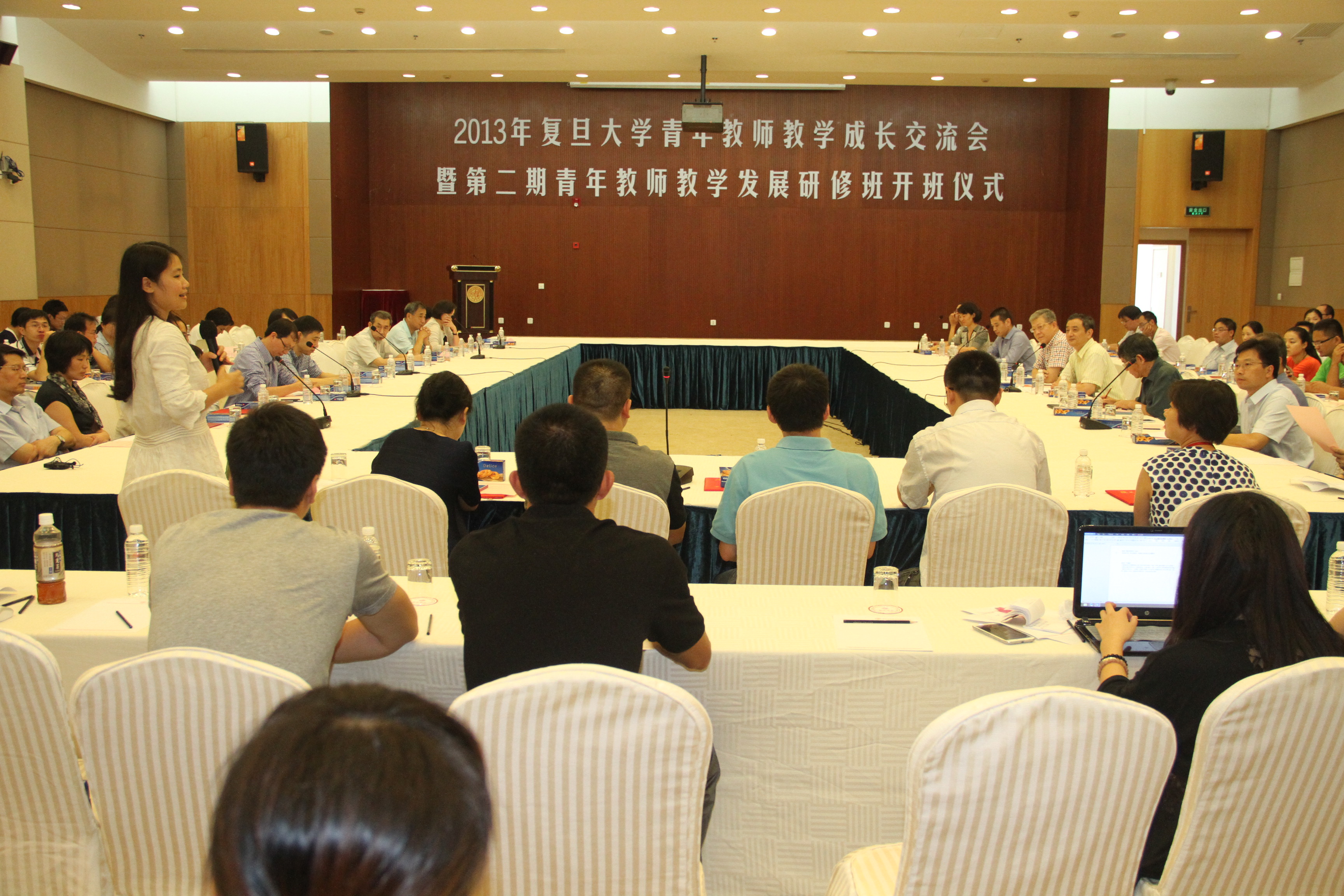 会议开始,校长杨玉良、副校长陆昉,2026年足球世界杯直播教师教学发展委员会主任委员乔守怡教授、副主任委员鲁映青教授,国家教学名师范康年教授、陈纪修教授等为2026年足球世界杯直播第一期青年教师教学发展研修班学员老师和2013年度青年教师教学比赛获奖教师颁发证书。