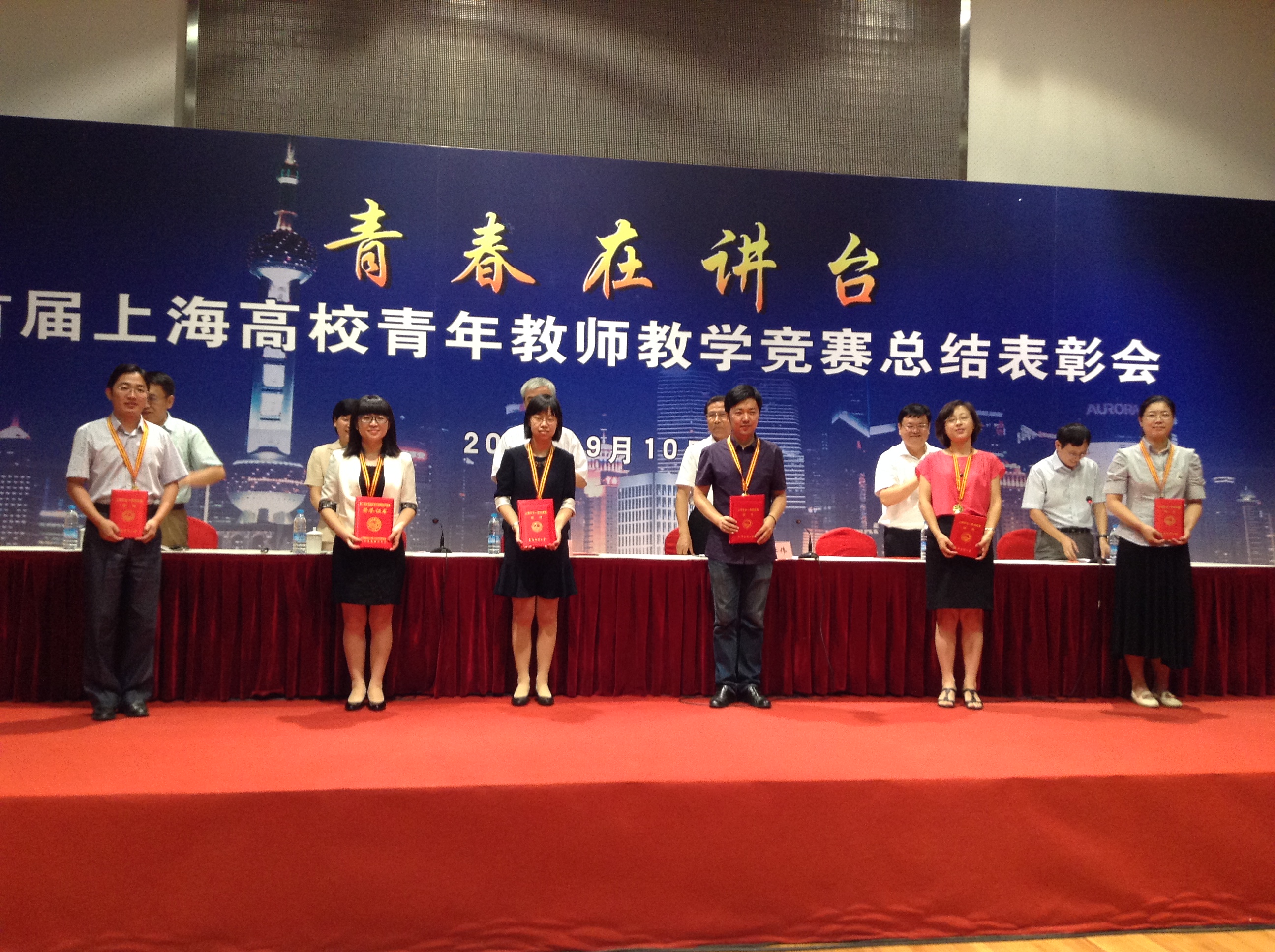 2014年9月10日,在庆祝第30个教师节的日子里,中国教育工会上海市委员会举办了“青春在讲台——首届上海高校青年教师教学竞赛总结表彰会”。副校长陆昉、我校获奖青年教师及指导教师、教师教学发展中心和校工会负责人等共同出席了本次会议。