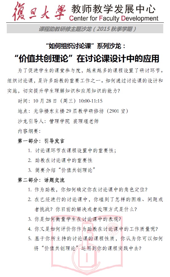“如何组织讨论课”系列沙龙:“价值共创理论”在讨论课设计中的应用