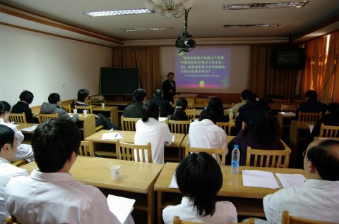 本次培训邀请了上海医学院分管教学的鲁映青副院长以及该课程负责人之一的钱睿哲副院长担任主讲。她们详细介绍了上海医学院PBL课程改革的背景、现状以及PBL指导课的基本构架,深入浅出,精辟独到,赢得了在场临床教师的一致好评。鲁院长和钱院长还与在座的青年教师展开了面对面的热烈讨论,进一步加深了他们对PBL内涵的理解。随后,长期从事PBL教学的向阳、赖雁妮及黄一沁3位医生结合自身带教经验介绍了在PBL教学过程中导师角色、评估学生、撰写病例等相关专题。最后,普外科的狄扬医生和04级八年制的五位同学围坐在一起,现场进行PBL小组讨论示范,加深了大家对PBL的感性认识,并为本次培训画上了圆满的句号。