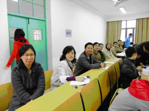 2010年11月29日上午8点1203教室,临床八年制学生正在聆听马端教授的双语课程《生物化学(二)》,而教室后排却多了十几位不速之客,究竟是何许人?原来这是一次生化系组织的教学活动,要求40岁以下的青年教师来参加实地教学观摩。