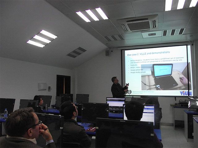 Laakso博士是开发ViLLE系统的项目负责人。在芬兰、澳大利亚、南非和德国等国家部分高校使用该系统。ViLLE课程学习平台为教师方便地创建虚拟课程,课程材料可以为其他老师所使用、修改和评阅。更大的优势是,当学生利用ViLLE系统进行学习或练习时,系统自动收集学生学习行为和结果的有关数据信息,并自动评阅学生作业。由于系统的这些性能,可为研究学生学习提供大量的定性和定量的数据。
