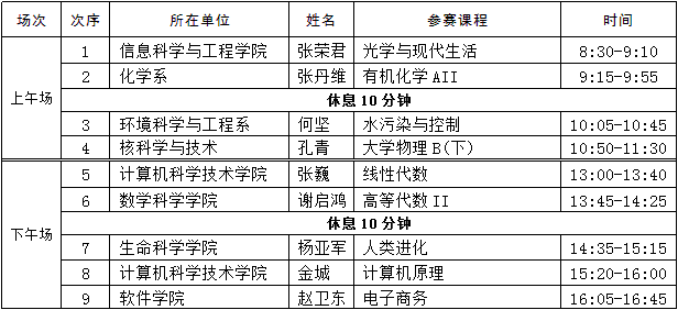 比赛面向全校师生开放,请有兴趣的教师自行前往比赛教室进行观摩,现场座位有限先到先得:)若您希望选择其中部分课程进行观摩,请尽量在参赛教师交接场时进入教室,以免中途影响比赛。进入现场后,请将手机调至静音。谢谢配合。