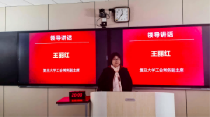 复选赛前校教务处、工会领导发言,感谢评委们对校赛各阶段工作的支持,鼓励选手以竞赛为契机,不断提升日常教学水平并展示复旦青年教师的风采。