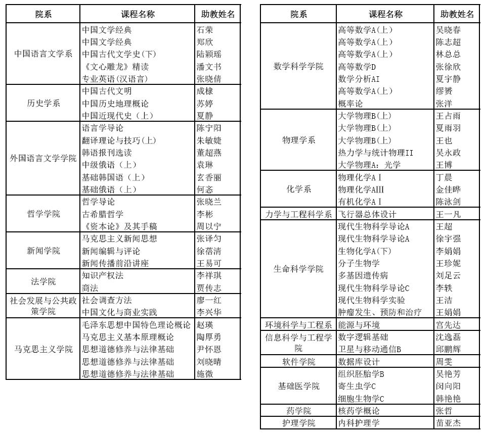 经评定,获评五星助教占本学期助教总数5.3%(核心课程助教将根据细化要求,另行评定),名单公示如下: