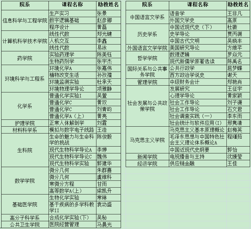 经评定,获评五星助教占本学期助教总数10.47%(核心课程助教将根据细化要求,另行评定),名单公示如下: