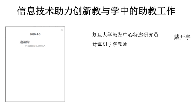 4月8日中午,计算机学院戴开宇老师进行了首场线上沙龙活动,主题为“信息技术助力创新教与学中的助教工作”。戴老师从我校开展在线教学的实际情况讲起,列举了各种有助于教师和助教高效组织和实施教学的教育信息技术。接着,戴老师又介绍了多类用于了解学生学习情况、学生对课程的反馈、促进学生自主学习以及制作课程资料的软件,在现场进行演示,并鼓励大家多手段结合使用,以更好地在线上的环境中促进学生学习。助教参与度高,反响好。