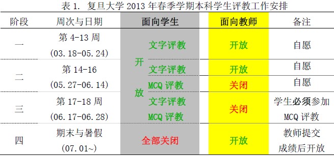 前年秋季学期起,从第4 周开始“文字评教”,对教学质量起到了良好的促进作用,得到很多同学和老师的肯定。2013 年春季学期继续实施,具体安排如