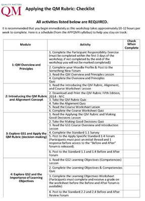 - 利用QM提供的在线评估工具,在不受监管的情况下进行课程初步筛选;