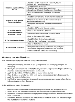 - 不断发展师资力量,鼓励教员通过参加研讨会熟练掌握QM标准和原则;
