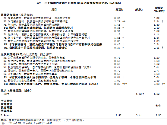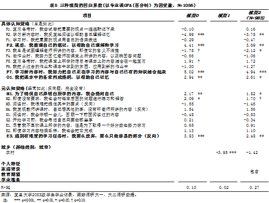 本文使用系列多元回归模型进一步证实自主学习策略与学业表现之间的关系: