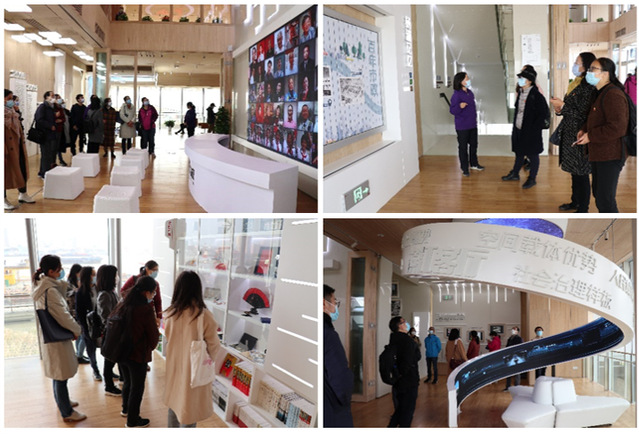 走进坐落于杨浦滨江江畔电站辅机厂站,灰蓝老厂房龙门桁架出现在大家的视野中,讲解员老师介绍本次开放的电站辅机厂站是在电厂厂区原址上保留改建而来,该建筑分为三层,以“百年记忆、魅力滨江”为主题,设置“滨江驿站”、“滨江客厅”、“滨江书房”三个功能区。一楼的“滨江驿站”,为市民游客提供咨询接待、休闲阅读等各类便捷服务;二楼的“滨江客厅”,展示了杨浦百年工业、百年大学、百年市政“三个百年”发展变迁,从“工业杨浦”到“知识杨浦”,再到“创新杨浦”的发展变化,体现了“三区联动、三城融合”的创新实践。三楼的“滨江书房”,设有“四史”学习教育阅读专区,提供习近平新时代中国特色社会主义思想以及党史、新中国史、改革开放史、社会主义发展史等书籍。