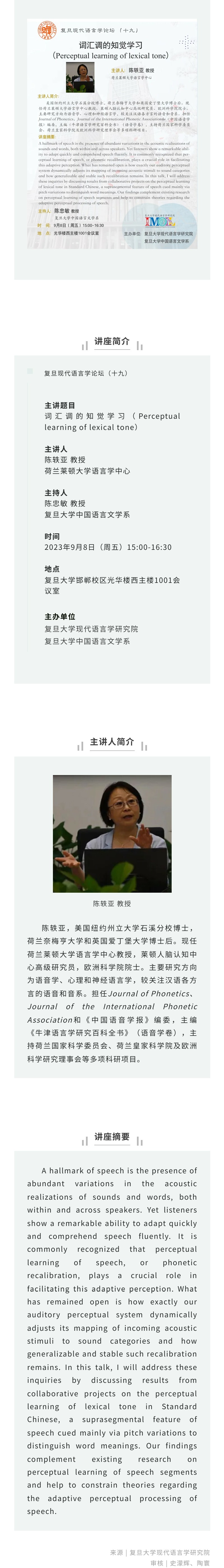 讲座预告 | 陈轶亚:词汇调的知觉学习