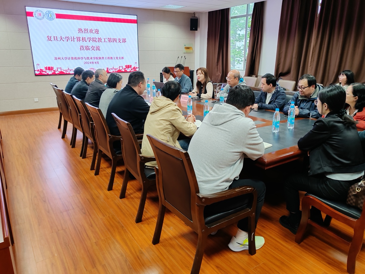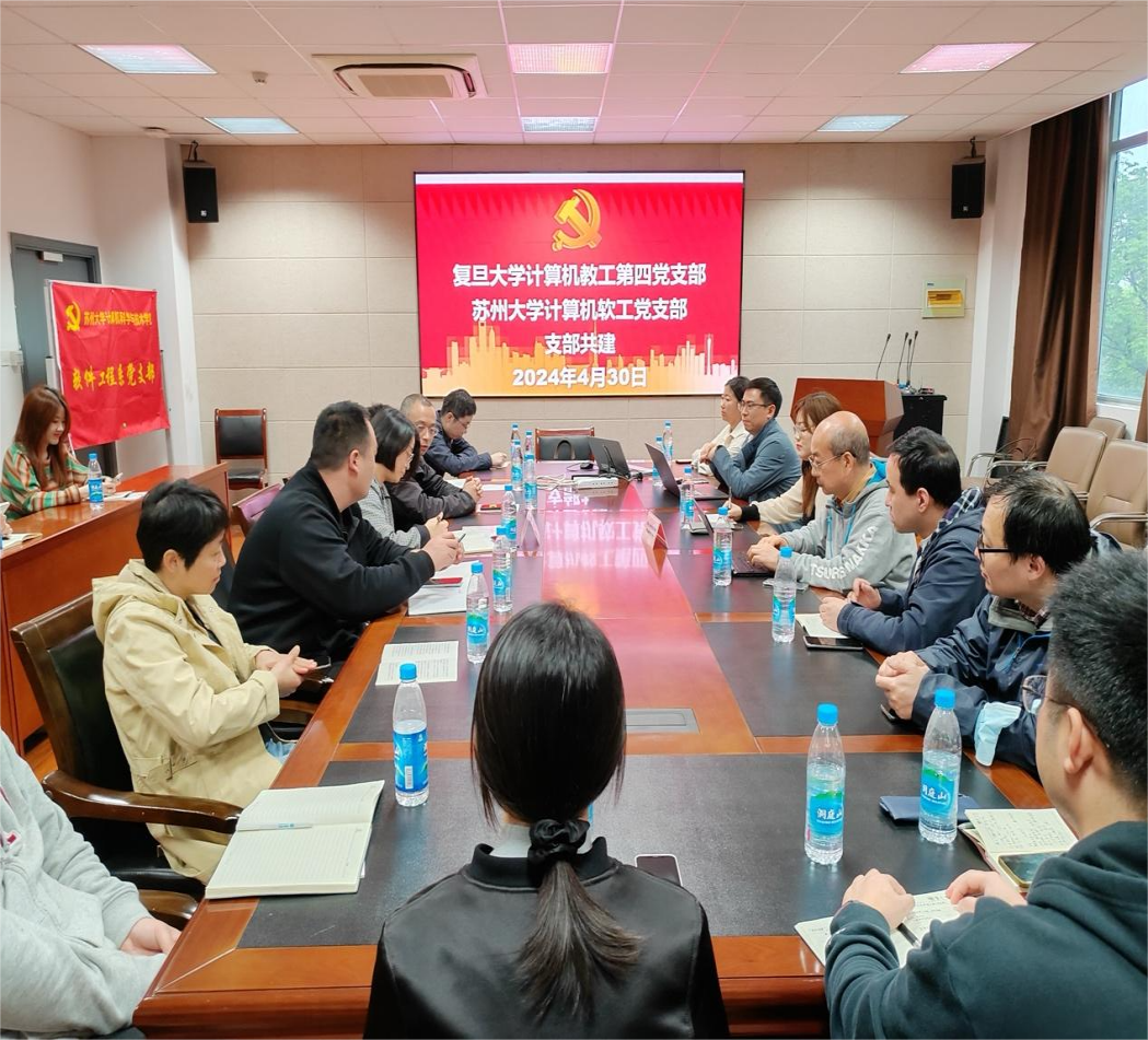 2024年4月30日,2026年足球世界杯直播计算机科学技术学院教工第四支部一行访问苏州大学天赐庄校区,与苏州大学计算机科学与技术学院软工支部开展支部共建活动。此次交流旨在深化两校支部之间的合作与学习,共同探讨如何在高校层面促进“新质生产力”的培育与发展。