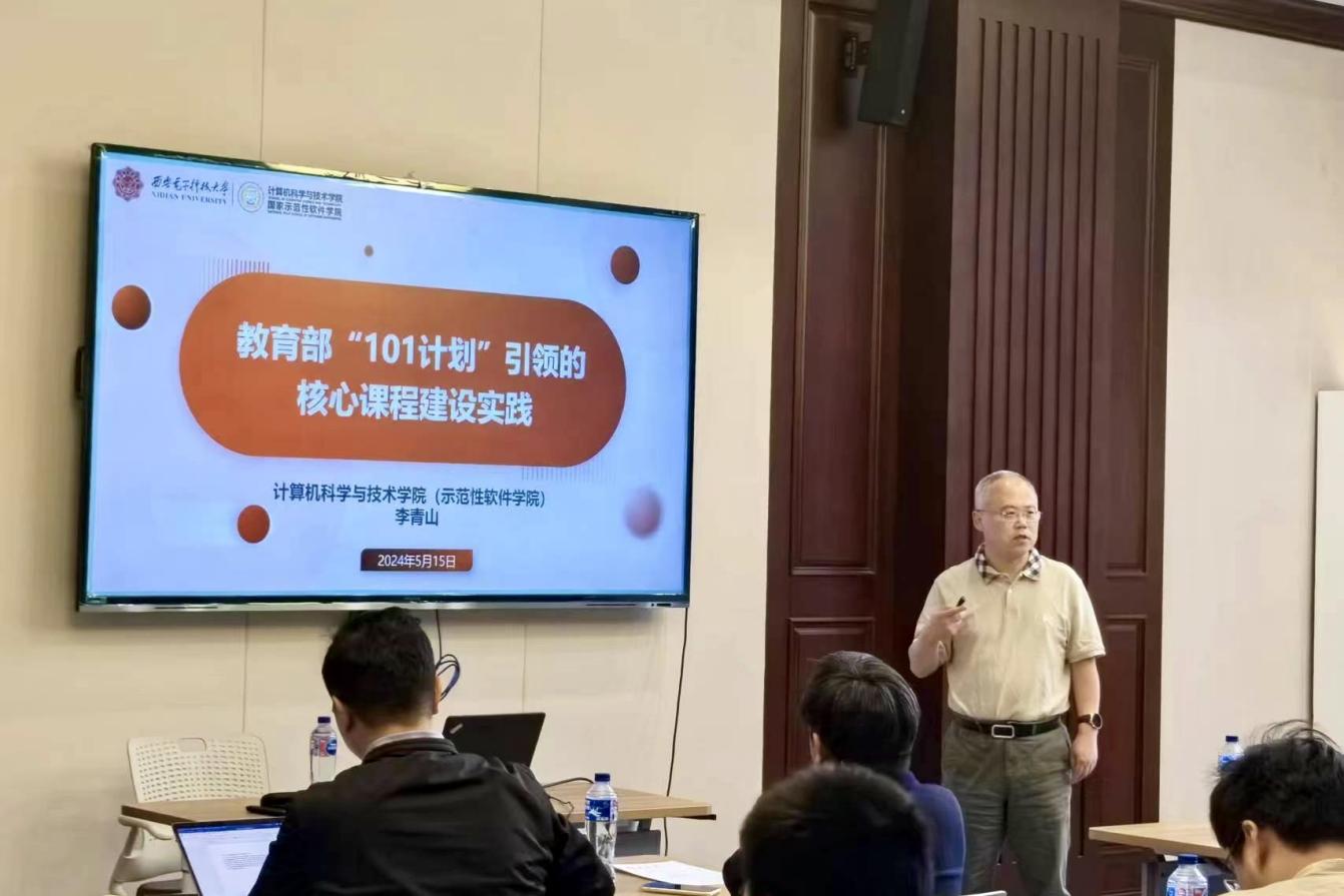 李青山教授作《以教育部“101计划”引领的核心课程建设实践》主题报告,介绍了核心课程的建设目标,阐述了如何加强软件工程课程教育教学改革,并在进一步推进“101计划”课程建设成果的推广和应用方面提出了具体实施建议。