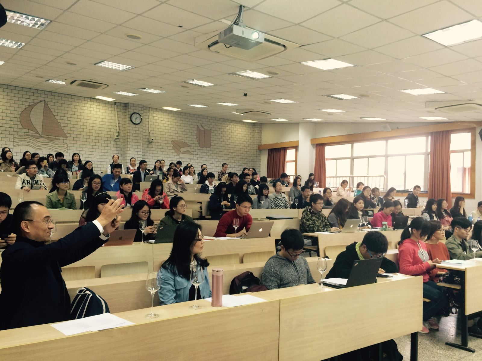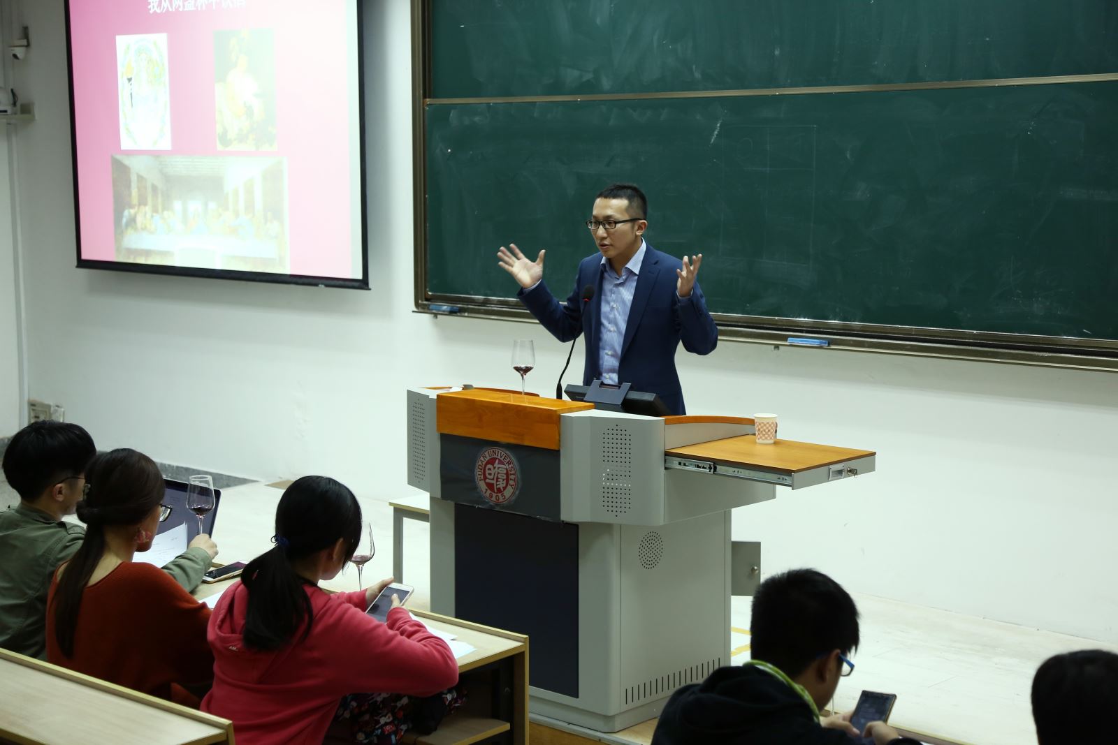 临近下课,窗外已是天昏地暗、秋雨滂沱,但意犹未尽的同学们无人离场,似乎觉得这场诗酒盛宴还不够过瘾。学生李逸凡在讲座结束不到四小时就在自己的微信公号发出了讲座速递,并收集了现场众多同学发出的听课感受,“美酒与诗歌的碰撞让我在忙碌的生活中感受到美学层面的崇高,使我得意短暂地超脱生活本身去静观生活”;“听着老师充满磁性的朗诵和透彻的解析,回味嘴里的苦涩和酸甜,隐隐能感受到诗中晦涩的隐喻和诗意的境界”;“下次又会是什么诗什么酒呢?”